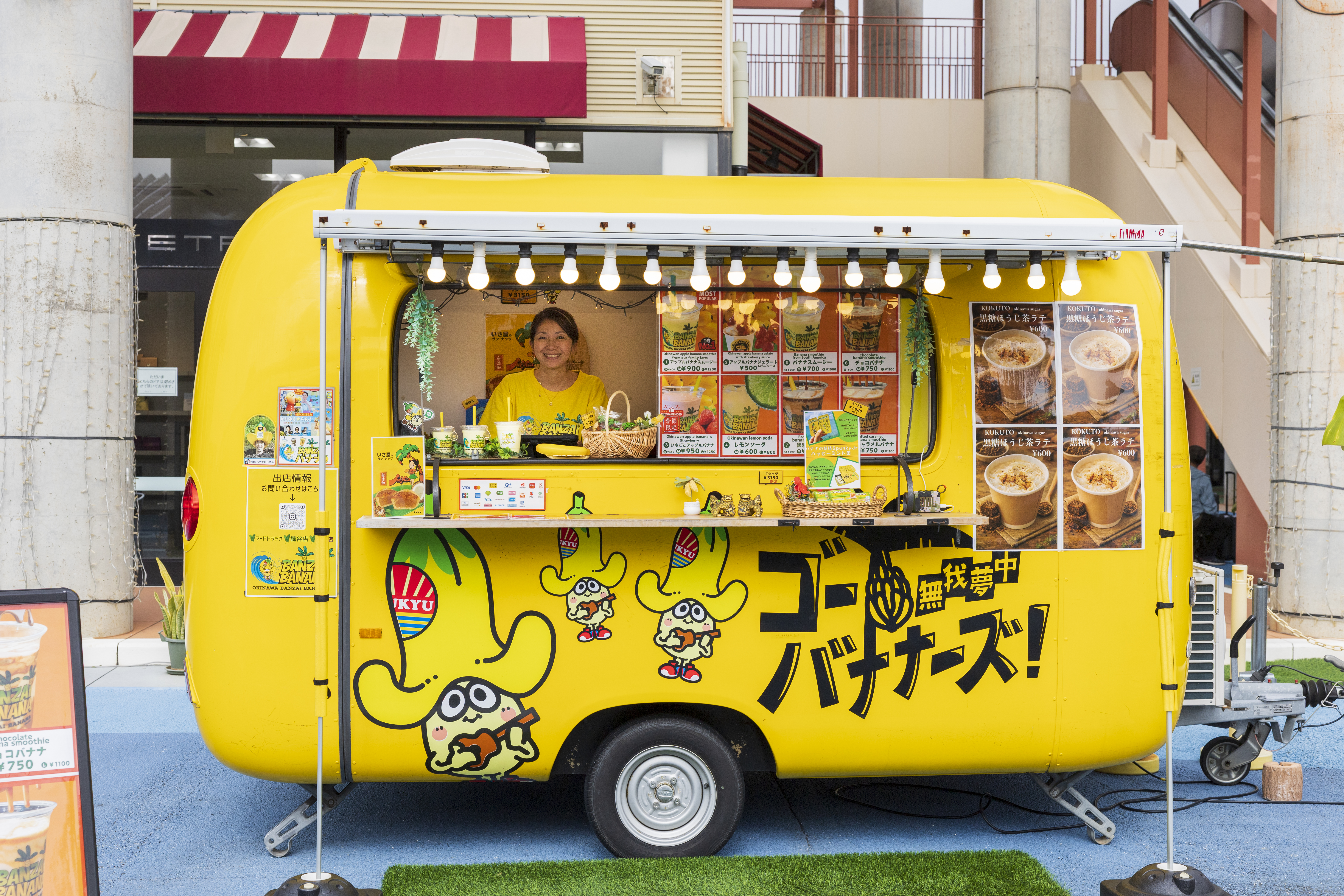 スムージーを販売するフードトラックには、この“スパンキージュニア”のイラストが大きく描かれており、鮮やかな黄色い車体と相まって、「沖縄アウトレットモールあしびなー」の人気撮影スポットにもなっています。