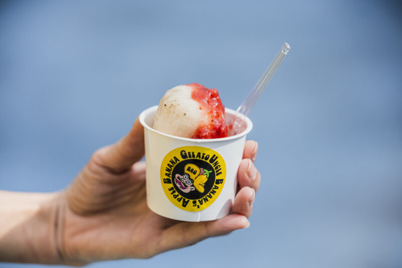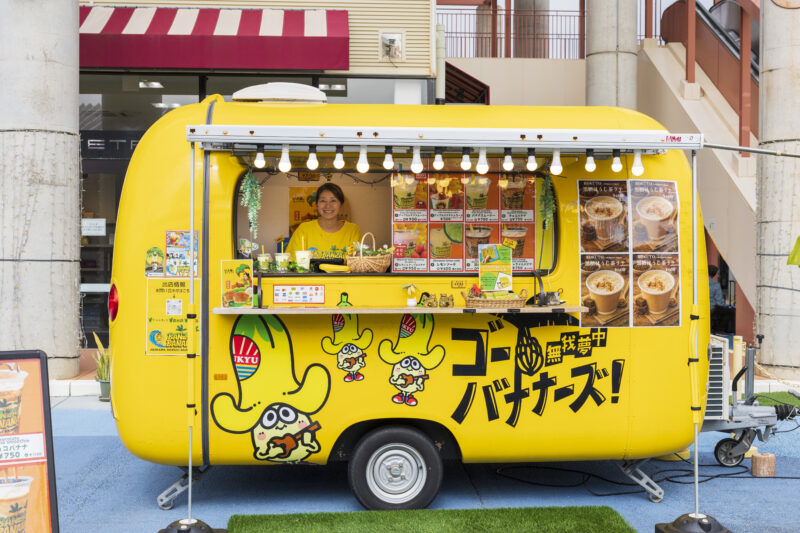 林さんが愛情をたっぷりかけて育てたアップルバナナのスムージーやジェラートは、読谷村や北谷町にある店舗、豊見城市の「沖縄アウトレットモールあしびなー」に出店しているフードトラックで味わうことができます。